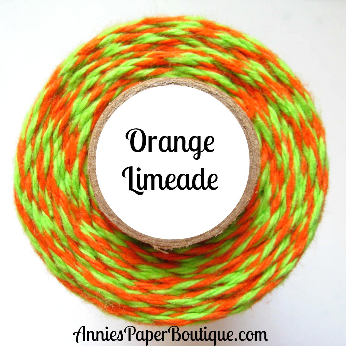 Orange Limeade is a festive twist of vibrant orange and lime green. Use our beautiful bakers twine to add a pop of color to your crafting and packaging. Created for Halloween, but this color is perfect for summer themes, too. It's great for embellishing cards and scrapbook pages, gift wrapping, topping a tag, or packing a sweet treat. The possibilities are endless. And with so many colors, you're sure to find one that tickles your fancy.