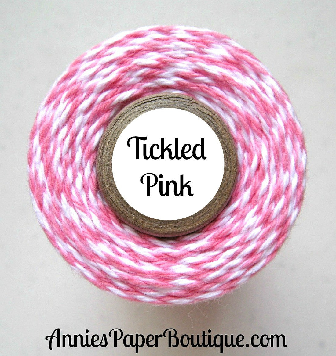 Tickled Pink is a twist of medium pink and white. Use our beautiful twine to add a pop of color to your crafting and packaging. It's great for embellishing cards and scrapbook pages, gift wrapping, topping a tag, or packing a sweet treat. The possibilities are endless. And with so many colors, you're sure to find one that tickles your fancy.