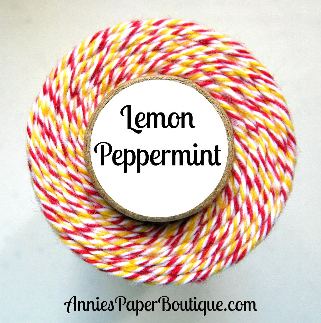Lemon Peppermint is a festive twist of red, white, and yellow.. Use our beautiful twine to add a pop of color to your crafting and packaging. It's great for embellishing cards and scrapbook pages, gift wrapping, topping a tag, or packing a sweet treat. The possibilities are endless. And with so many colors, you're sure to find one that tickles your fancy.
