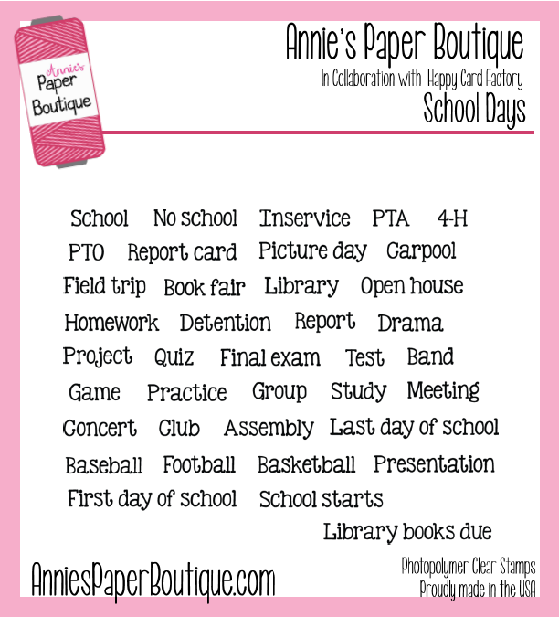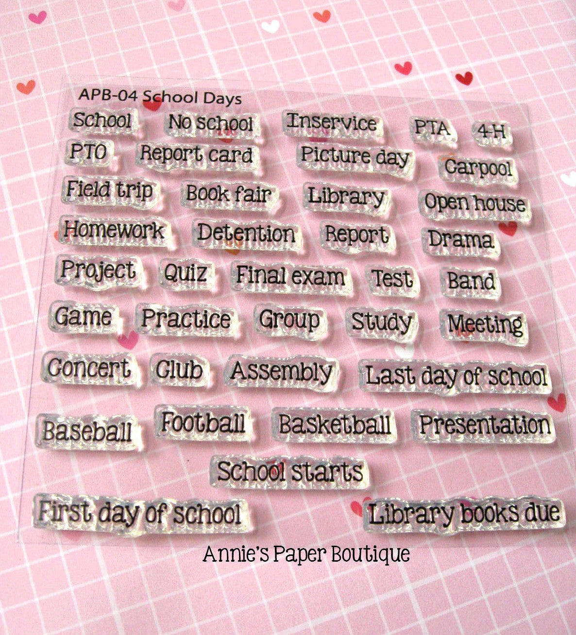This fun stamp set is great for keeping up with school activities. But can also be used for paper crafting and memory keeping.