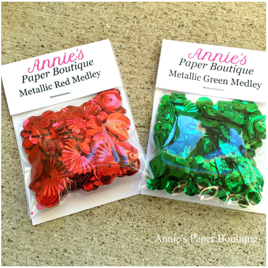 Our Metallic Red and Metallic Green Medleys are beautiful blends of vivid, shiny colors that will definitely add a bit of sparkle and pizzazz to your crafting.  These are great for embellishing cards, layouts, tags, and the list goes on.