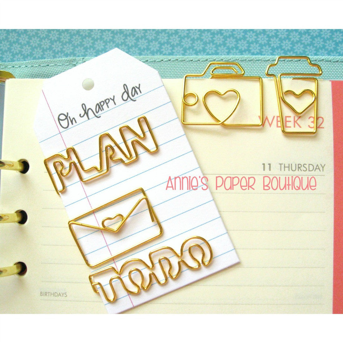 Set - Camera, Coffee, Love Letter, Plan, & To Do Planner Paper Clips
